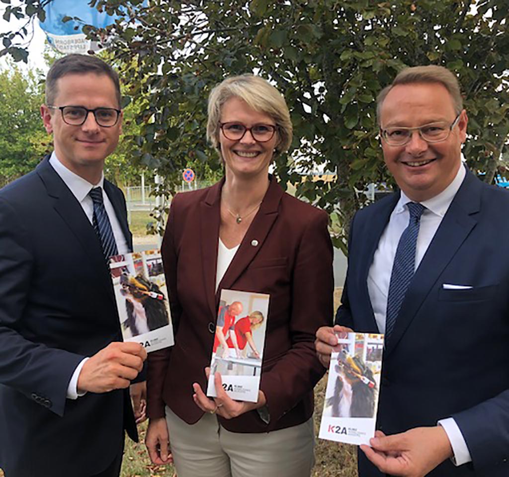Die Konzeptvorstellung der K2A war ein zentraler Baustein der Veranstaltung. Elmar Kloke machte hier u. a. auf die Dringlichkeit der EinfĂŒhrung des digitalen Berichtshefts aufmerksam. Vor dem Hintergrund weiterhin rĂŒcklĂ€ufiger Nachfrage sei dies ein wesentlicher Aspekt, sagte er. Die Ministerin folgte den AusfĂŒhrungen mit großem Interesse und sagte zu, sich persönlich fĂŒr die schnelle Durchsetzung zu verwenden.