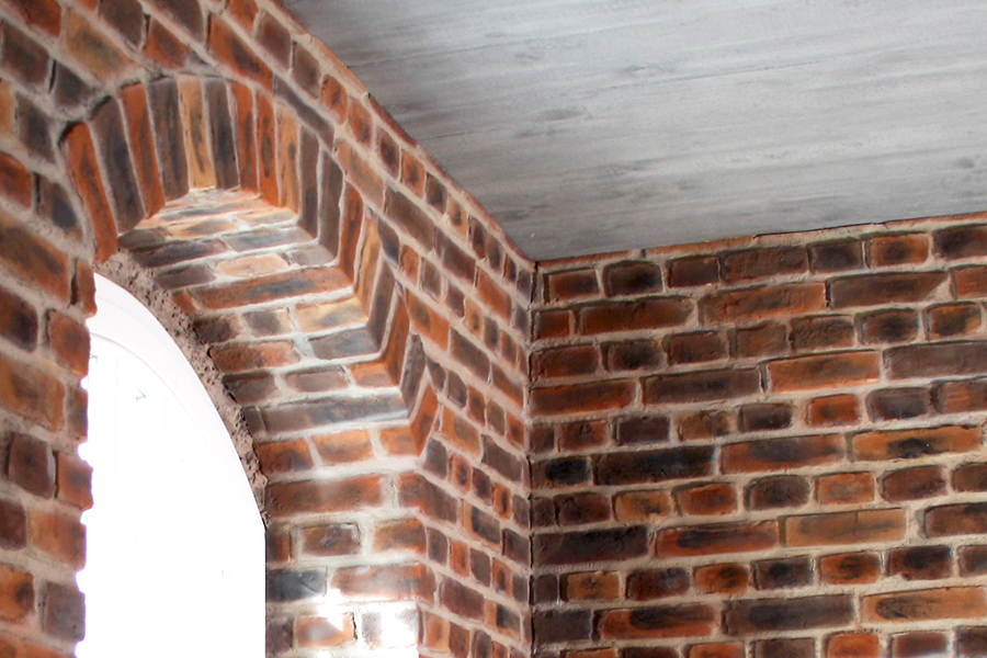Vorgefertigte Paneele in Ziegeloptik erzeugen den tÀuschend echten Look einer gemauerten Wand.