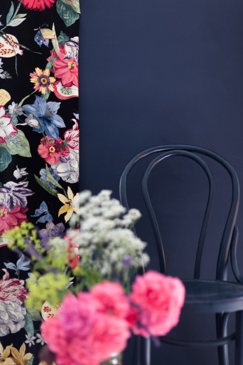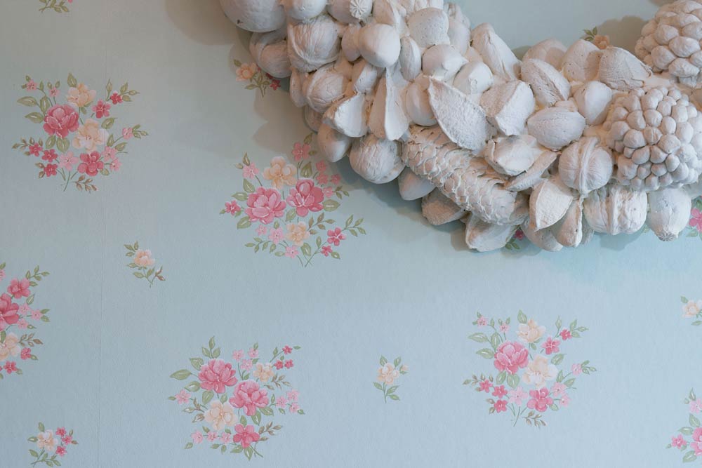 Florales Muster im englischen Pilcher Style. Perfekter Ort fĂŒr den Kranz aus NaturfundstĂŒcken.
