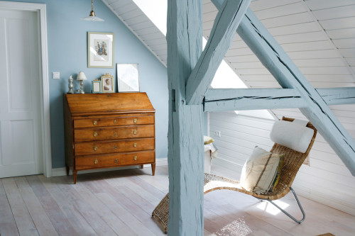 Ăber einen hellen Dielenboden und ein angenehmes Grau sind die Zimmer in der oberen Etage miteinander verbunden