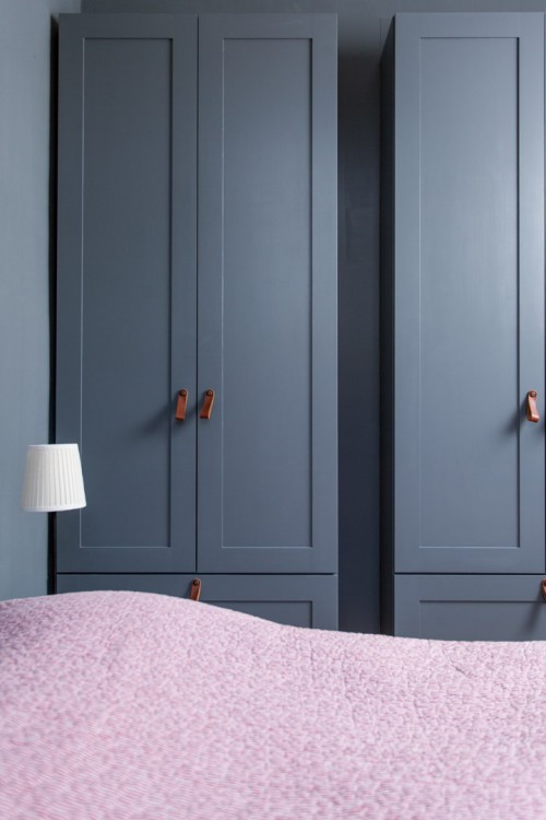 Im Ankleidebereich. Der noble Kleiderschrank wird edel begleitet von einem englischen Farbton aus der Palette von Anna von Mangoldt.