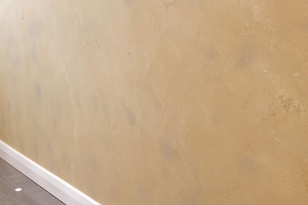 Ein eingefĂ€rbter Mineralputz mit FeinsteineinschlĂŒssen