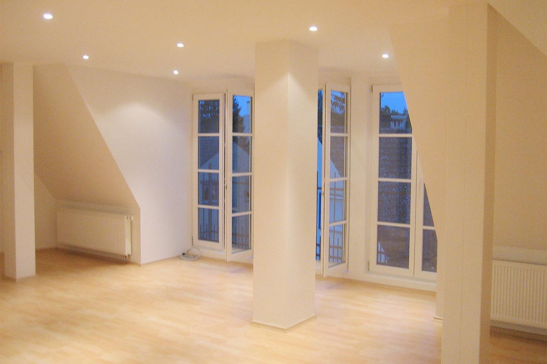 Dachgeschossinnenausbau mit Gaube und französischem Balkon. FĂŒr abends gibt es ein Lichtspiel mit LEDs.