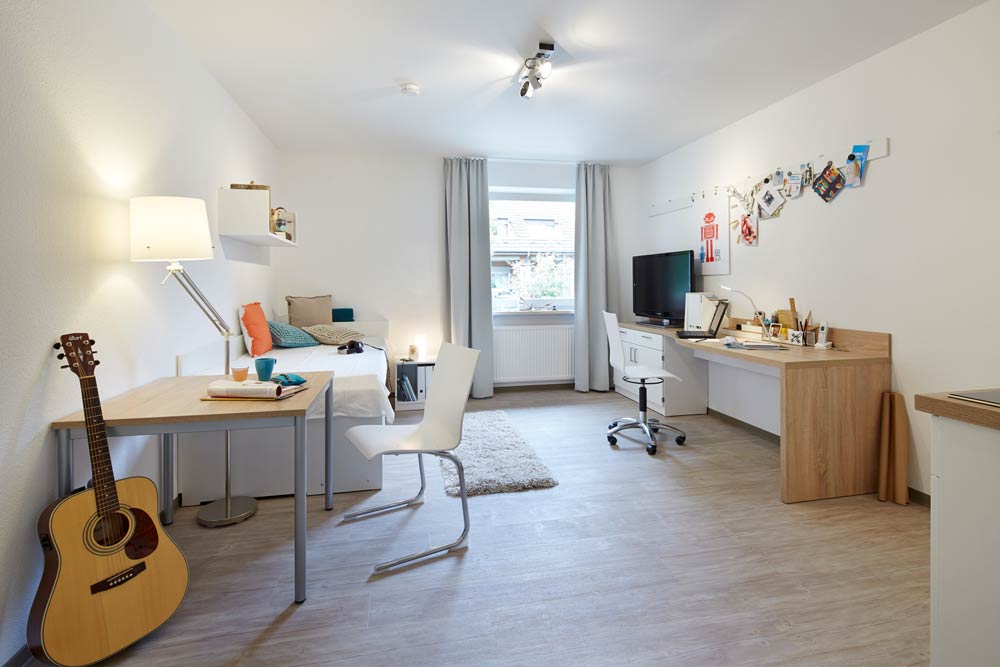 Wirtschaftlichkeit und AttraktivitĂ€t können gut zusammenkommen. Ein junges Appartment mit cleanen WĂ€nden und gemĂŒtlichem Bodenbelag.