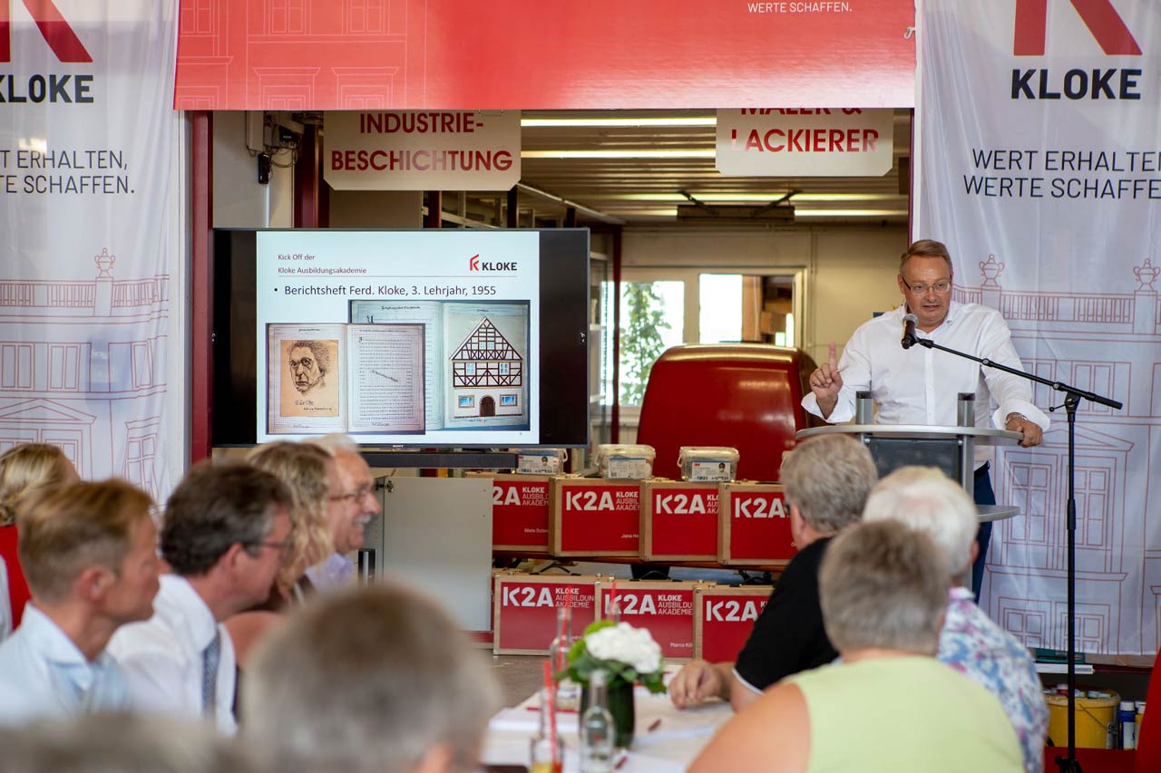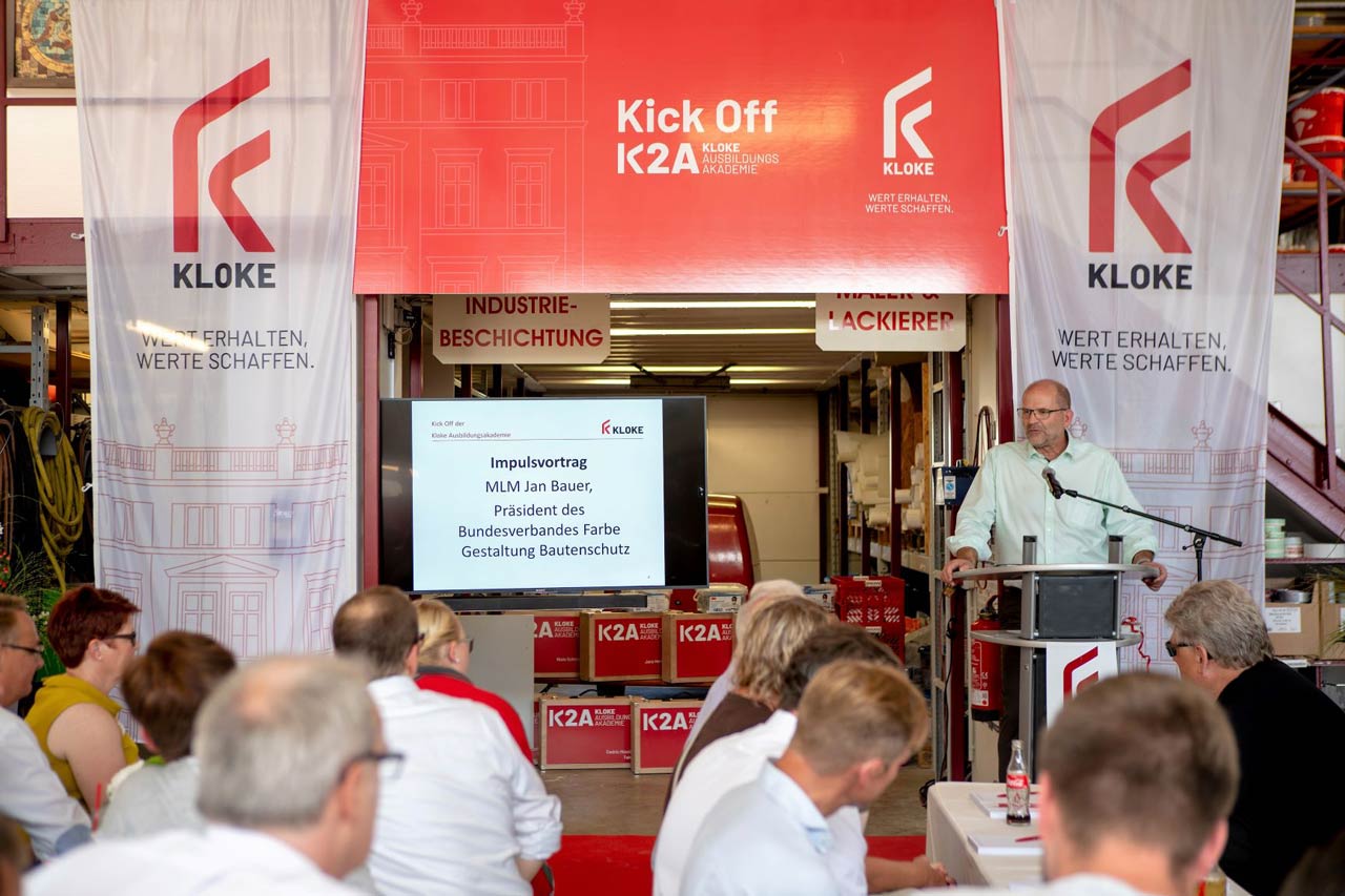 Ja, das Malerhandwerk braucht neue Impulse. Seit dem 3. August 2018 werden sie gesetzt. Von Elmar Kloke und seinem Team. Beim Kick Off bei sommerlichen Temperaturen feierten die GĂ€ste den Auftakt der K2A, eines neuen Konzepts der Ausbildung. Mit von der Partie: Jan Bauer (PrĂ€sident des Bundesverbandes Farbe Gestaltung Bautenschutz), Paderborns BĂŒrgermeister Michael Dreier und Kreisdirektor Dr. Ulrich Conradi. Die Foto-Galerie gibt einige EindrĂŒcke wieder.