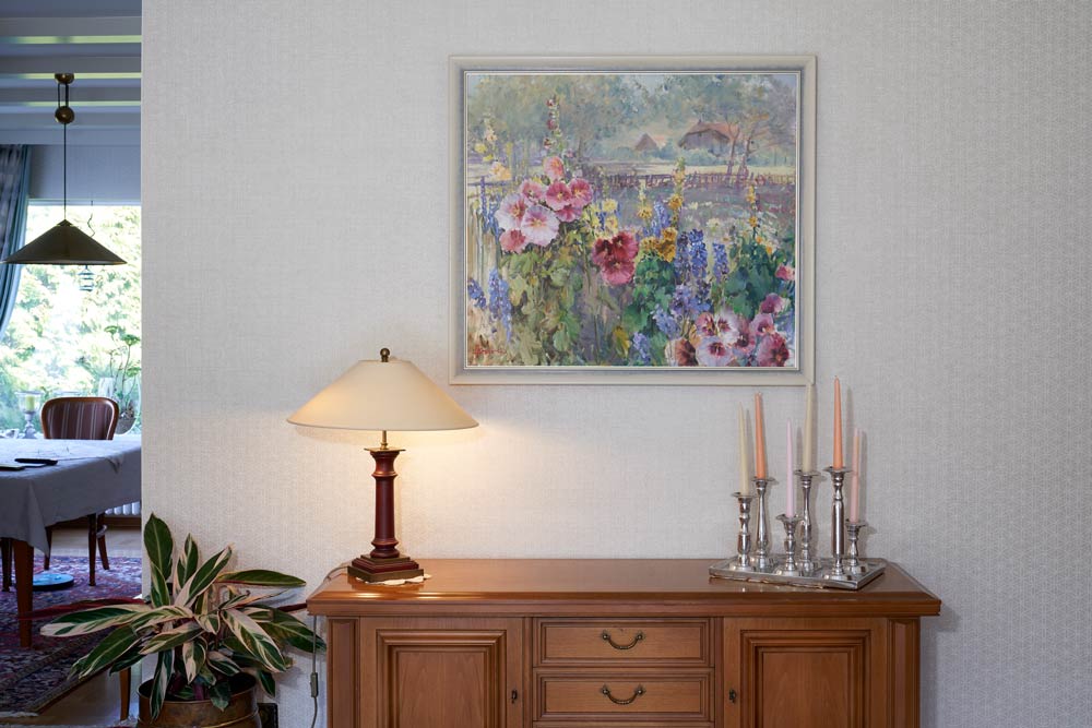 Ein besonderer Platz fĂŒr ein besonderes Bild. UnterstĂŒtzt durch eine Tapete, die sich zurĂŒckhĂ€lt.