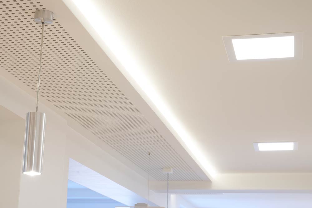 Es muss nicht unbedingt die klassische Rosette ĂŒber dem Leuchter sein! Sehr zeitgemĂ€Ăe geometrische Formen setzen Deckenlampen ebenso attraktiv in Szene. Moderne, umlaufende Lichtleisten vereinen indirekte Beleuchtung mit Raumakzentuierung. Treppen erhalten mit beleuchteten Bodenleistung oder im GelĂ€nder integrierter Beleuchtung ein Plus an Sicherheit. Selbst Steckdosen, SteuerungsflĂ€chen und andere funktionale Elemente der Wohnung finden mit beleuchteten Leisten einen besonderen Rahmen.