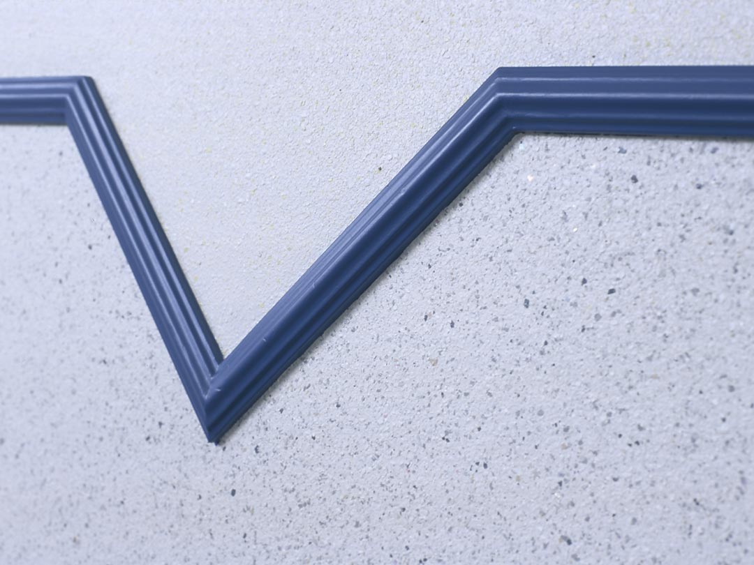 Farbiges Profil in V-form trennt den Sockel von der WandflÀche.