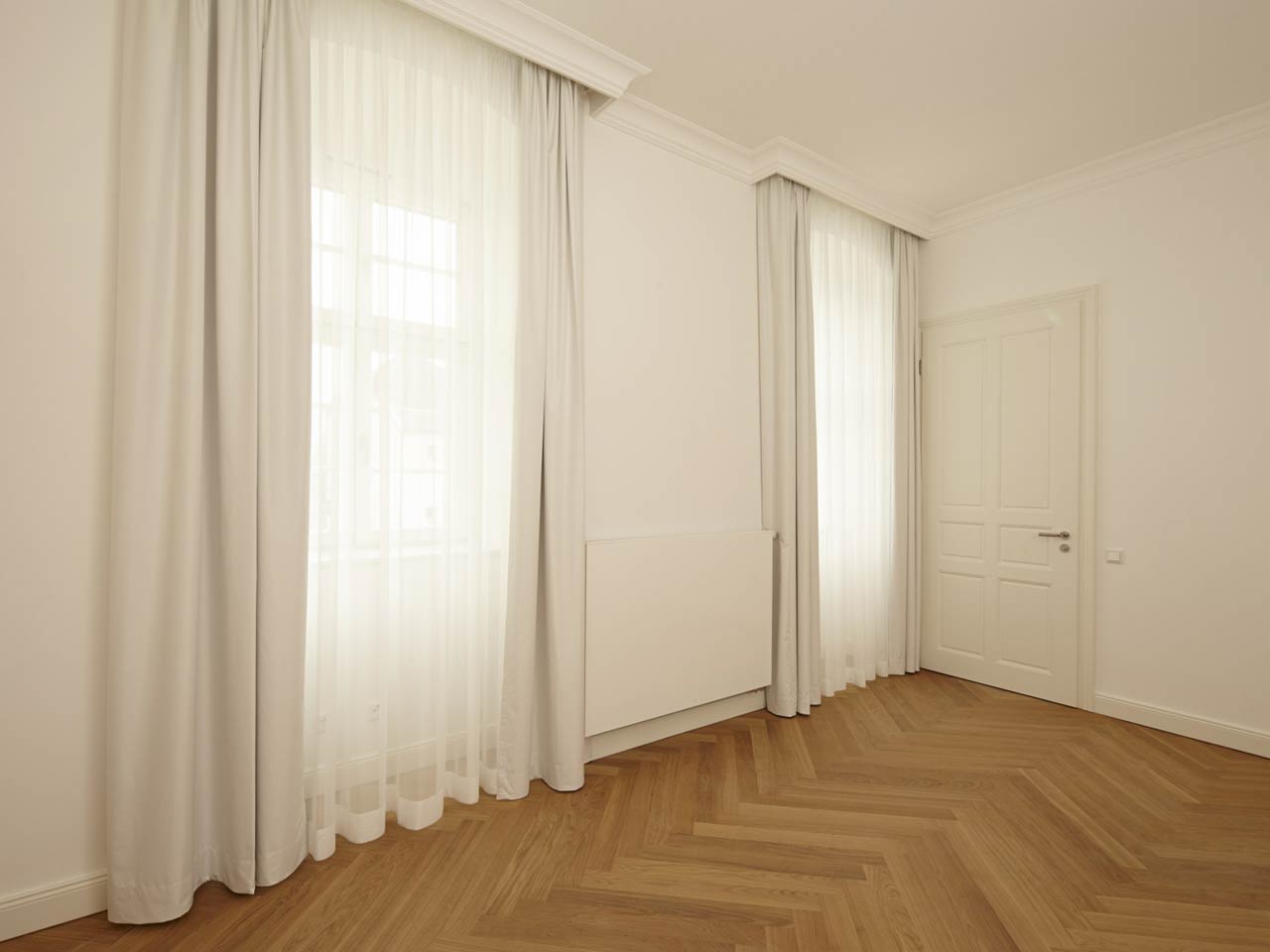 Gestaltungselement mit Funktion: Die Friesleiste nimmt die Gardine auf und kaschiert die FĂŒhrung.